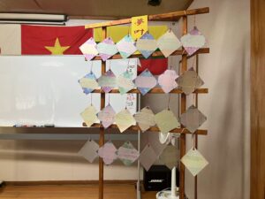 昼食後は、絵馬風の紙にそれぞれの「夢」を書いて発表。